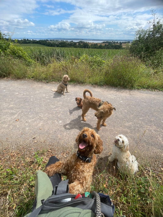 “We are really pleased to have found Elaine.Elaine introduced Nelly carefully to the pack so she settled in well and grew in confidence and is now thoroughly enjoying the varied walks and socialising with all the other dogs.The longer walks really work well and break up her day so she is not left for long periods when we are at work.Nellies favourite days are Wednesdays when they go on a day trip,especially when Beachwalk is involved! Her welcome present was also much appreciated! Thank you Elaine.”